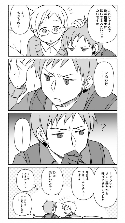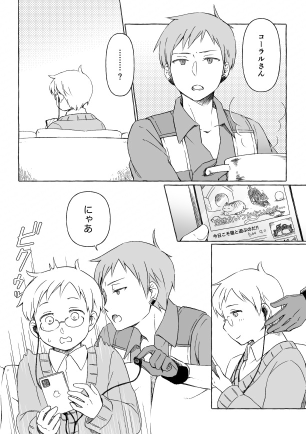お題は『コーラルのイヤホンを後ろからそっと外して耳元で囁くナナシ』でした!